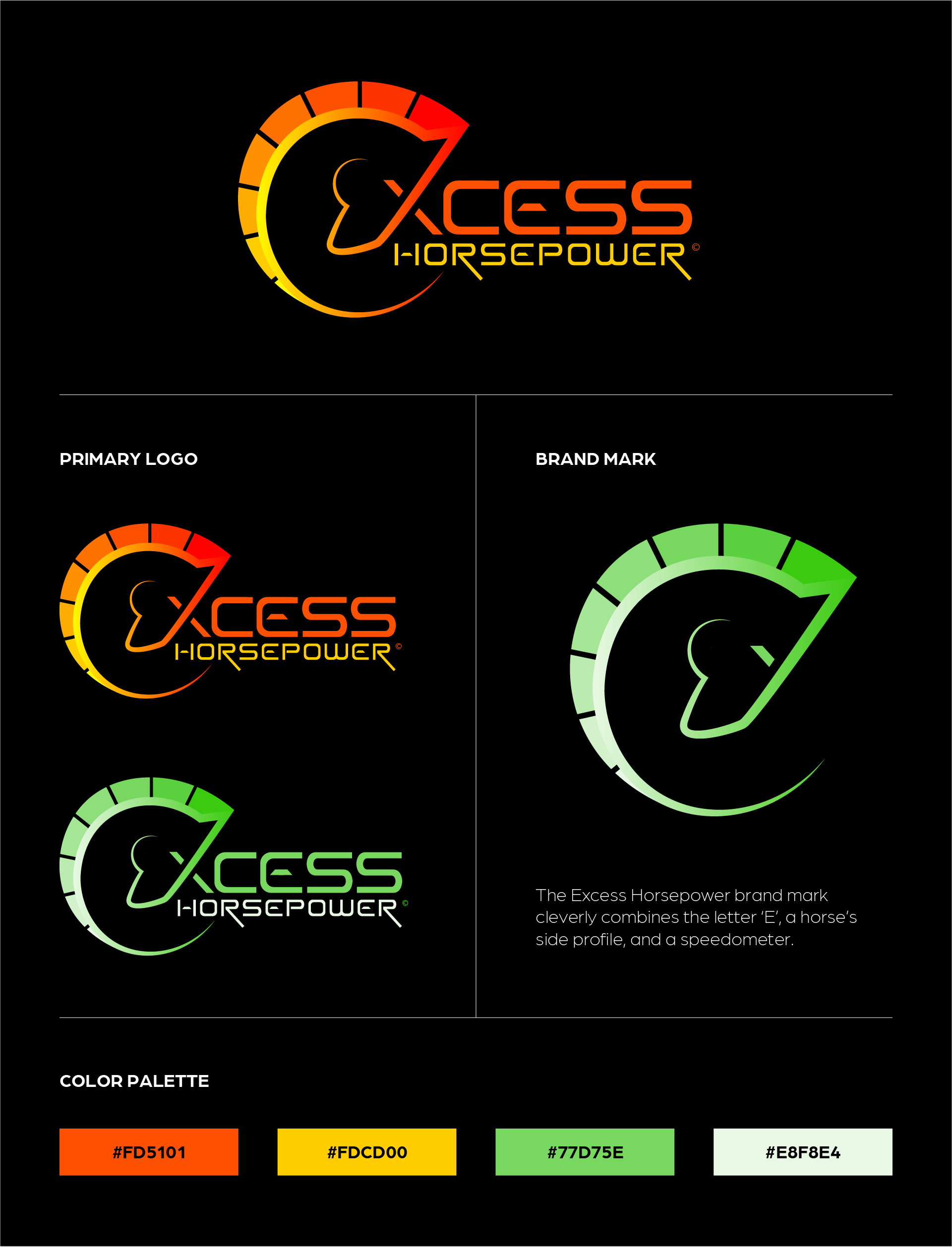 This was a personal project of mine—a redesign of my late older brother's small business, Excess Horsepower. Believe it or not, this was the first logo I ever designed. I am proud of its incorporation of both a horse (doubling as the letter 'E') and a speedometer, a nod to the company's services/products.